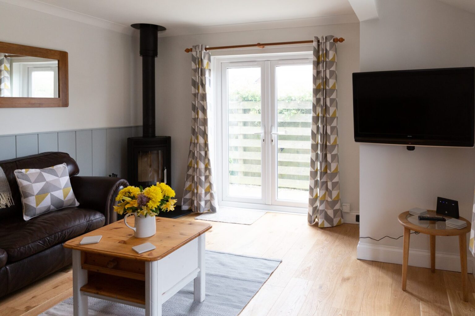 A delightful bungalow in St Davids with a coastal-inspired interior designed to help you relax as soon as you step through the door! Sleeping 4 and welcoming 1 dog, Yn Y Ty is perfect for the change of season, with a log burner and cosy blankets for chillier spring evenings, and a sunny rear garden to take in the sun.